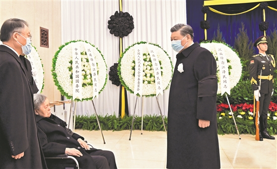 12月5日,江泽民同志的遗体在北京火化。这是习近平向江泽民同志的夫人王冶坪和亲属表示深切慰问。新华社记者 李学仁 摄