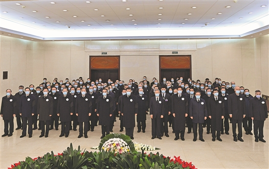 12月5日,江泽民同志的遗体在北京火化。这是习近平、李克强、栗战书、汪洋、李强、赵乐际、王沪宁、韩正、蔡奇、丁薛祥、李希、王岐山、胡锦涛等到中国人民解放军总医院为江泽民同志送别。新华社记者 谢环驰 摄