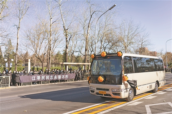 从中国人民解放军总医院到八宝山,首都各界群众纷纷来到沿途道路两旁,送别敬爱的江泽民同志,表达对江泽民同志的深切哀思。