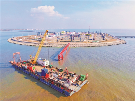11月29日早晨,在位于冀东油田南堡1号人工岛外西侧的海面上,300吨的铺管船正在进行南堡1-29储气库海底注采集输管道的登陆立管沉管和导管架水平段连头施工。该储气库是我国第一座油藏改建的海上储气库,承担着京津冀调峰保供重要任务,设计有效库容18亿立方米,目前正加快推进储气库海底管道建设进度。杨军 高雲 摄