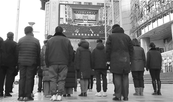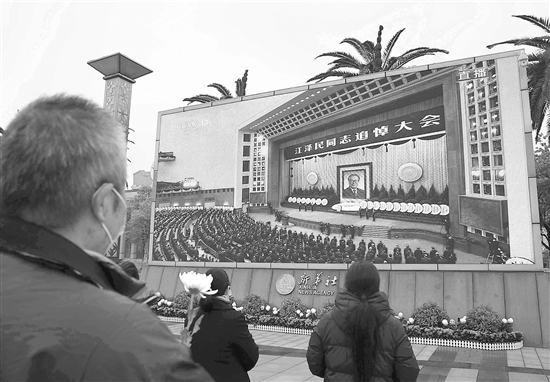 这是在江西南昌八一广场,群众收看江泽民同志追悼大会直播。