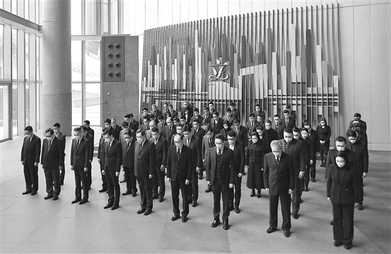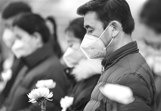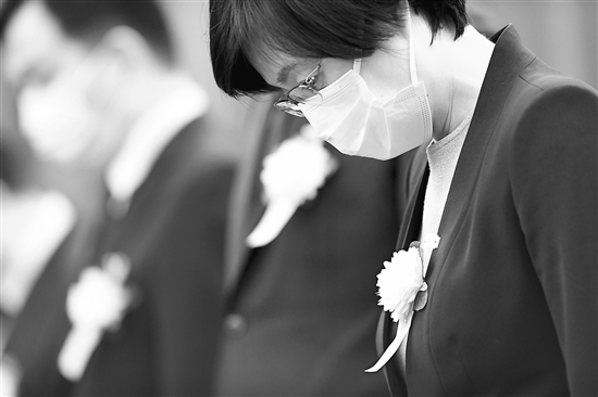 这是在上海交通大学,师生代表肃立默哀。新华社记者 刘颖 摄