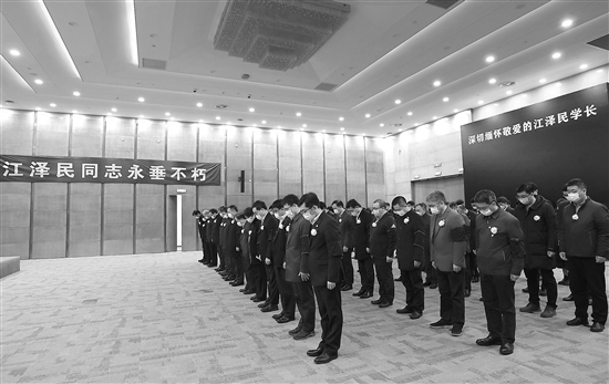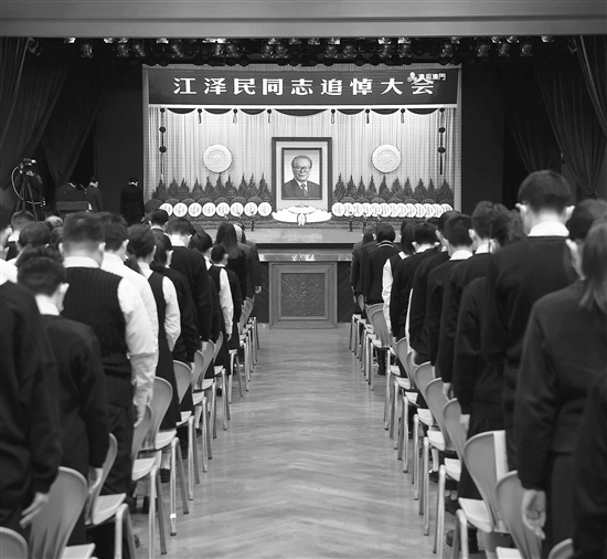 12月6日上午,中共中央、全国人大常委会、国务院、全国政协、中央军委在北京人民大会堂隆重举行江泽民同志追悼大会。举国上下,各族人民沉痛悼念江泽民同志。这是在北京王府井大街,群众肃立默哀。