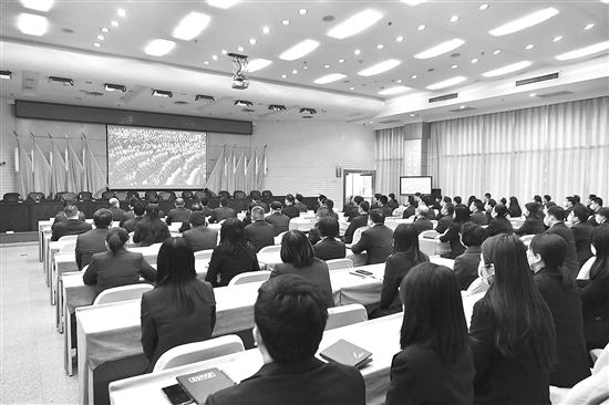 这是在陕西西安的中铁二十局集团,干部职工收看江泽民同志追悼大会直播。