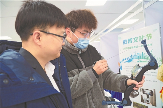 12月3日,杭州,在浙江农林大学数学与计算机科学学院举办的“数智”文化节上,该校师生正在体验VR虚拟技术在教学、运动、旅游、游戏等领域的应用。在当天的“数智”文化节上,元宇宙、360VR、3D场景等一系列基于数智技术的概念和产品,展现了数智技术赋能各领域的无限魅力,吸引了广大师生学习和体验。视觉中国 供图