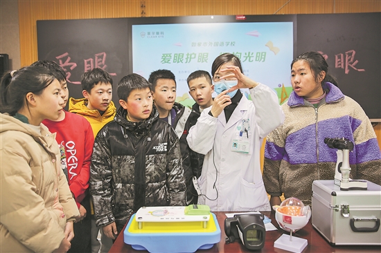 12月8日,江苏如皋外国语学校中小学部联合当地莱尔眼科医院开展“爱眼护眼小课堂 ”活动。通过为学生们讲解眼球构造、视力检测等方式,普及近视防控、用眼卫生等方面知识,引导学生从小养成良好的用眼习惯,关注眼健康。