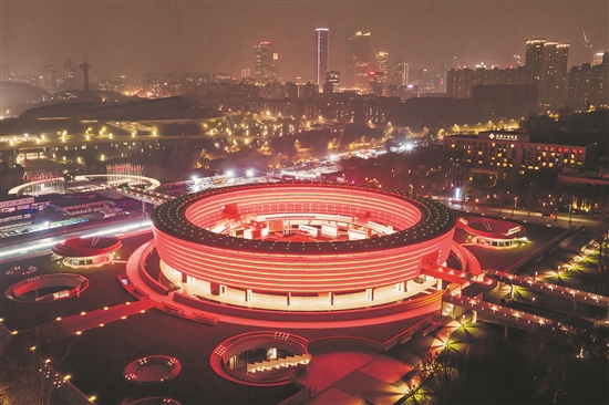 据了解,南京宪法公园即将对市民开放。该宪法公园包括宣誓广场、宪法展览馆等。图为航拍的公园夜景。