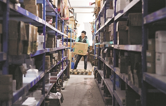 12月12日,工作人员在浙江省乐清市一电商产业园理货。随着“双12”来临,各大电商及物流快递企业迎来订单高峰。