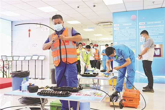 厦门市第二十八届职工技能竞赛5G通信职业技术比赛现场。(厦门市总工会 供)