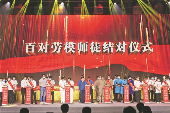 百对劳模师徒结对仪式现场。(林柳依 摄)