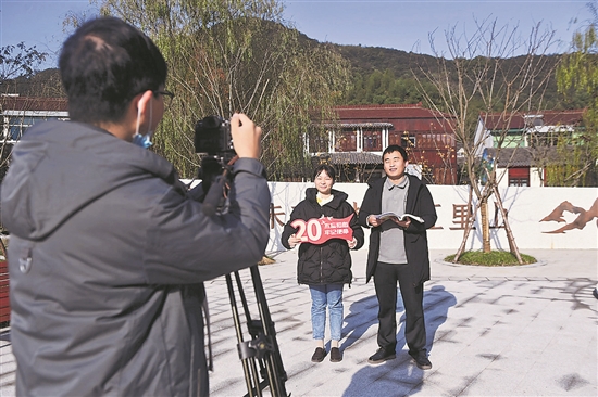 12月13日,在湖州市吴兴区道场乡红里山村,“道场青年说”宣讲团成员进行党的二十大精神微视频宣讲的拍摄录制。