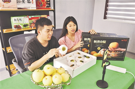 近年来,山东省聊城市乡村振兴局探索“党支部领办合作社+脱贫户”模式,推进巩固脱贫攻坚成果与乡村振兴有效衔接。冠县清水镇刘屯村结合本地特色产品发展电子商务,拓宽销售渠道,有效带动脱贫户致富的同时,也助力乡村产业发展壮大。图为清水镇电商在进行直播。