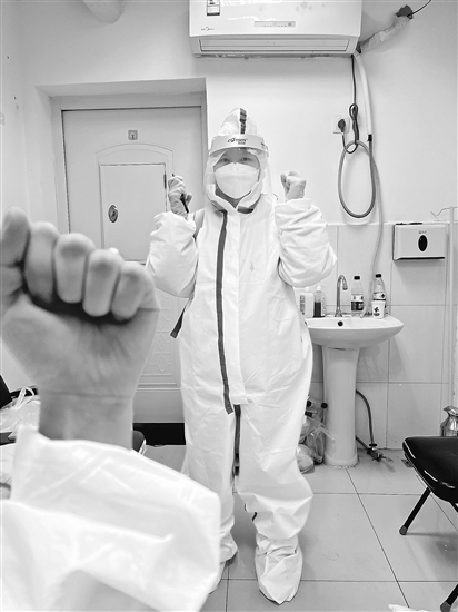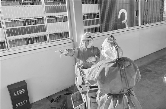 在小汤山医院,正准备给陈乐做核酸检测的医护人员。受访者供图