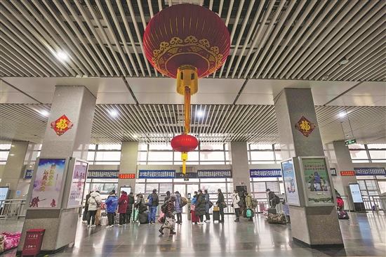 12月20日,在北京四惠长途客运站,旅客在排队检票。