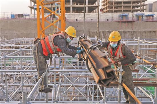 12月21日,北京市石景山区的首钢园东南区项目上,来自中建三局的工人们正在搬运材料。连日来,北京地区气温连续下滑,不少户外劳动者依然顶着刺骨寒风坚守施工一线。为此,不少施工单位制定了详细的冬季施工方案,最大限度降低低温对施工造成的影响。