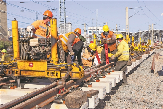 今日冬至,寒潮来袭。12月22日,中国铁路上海局集团有限公司阜阳工务段启动防寒黄色预警,组织职工在京九线阜阳站进行更换道岔作业,提前备战明年春运,养护设备,防止钢轨折断,全力保障运输安全畅通。