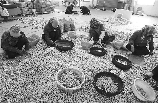 寒冬时节,香泉镇马铃薯产业园的马铃薯原原种喜获丰收,工人们忙着筛拣、装袋、储存。近年来,有“中国薯都”之称的定西市着力促进马铃薯产业转型升级,马铃薯产业已成为当地农民增收致富、助推乡村振兴和经济发展的优势主导产业。新华社发(王克贤 摄)