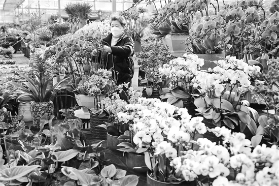 12月25日,江苏连云港,市民在花卉市场选购年宵花。随着元旦、春节的临近,江苏省连云港市花卉基地、花卉市场的盆栽鲜花销售逐渐升温,吸引市民前来选购。视觉中国 供图
