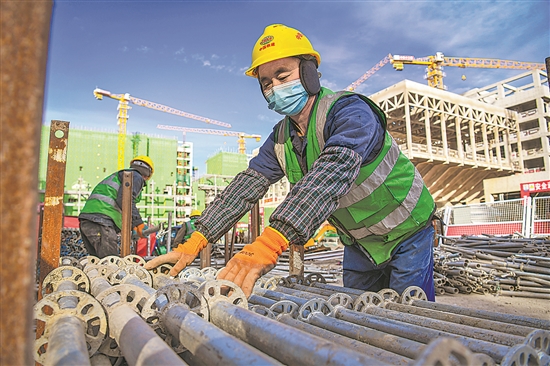 1月4日,河北省雄安新区创新研究院科技园区建设工地内,工人正在忙碌。该园区建设工程由中铁十二局承建,开工以来,该局工会组织职工开展了一系列劳动竞赛,确保工程建设有力有序推进。