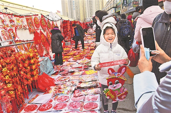 春节临近,被誉为“青岛第一集”的山东省青岛市李村大集一派繁荣热闹的景象,众多市民前来采购年货,久违的烟火气正逐渐回归。新华社记者 李紫恒 摄