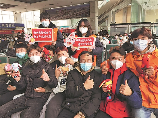 1月5日15时22分,K1540次列车从中国铁路上海局集团有限公司管辖的滁州北站出发,380名藏族务工人员在客运志愿者引导下,带着在外打拼的收获和即将与亲人团聚的喜悦登上了返乡的列车。