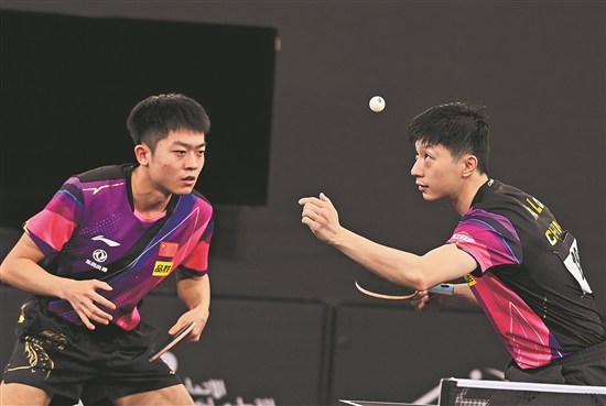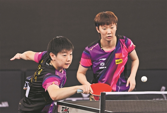 中国组合王曼昱/孙颖莎(左)在比赛中。新华社发(尼库 摄)