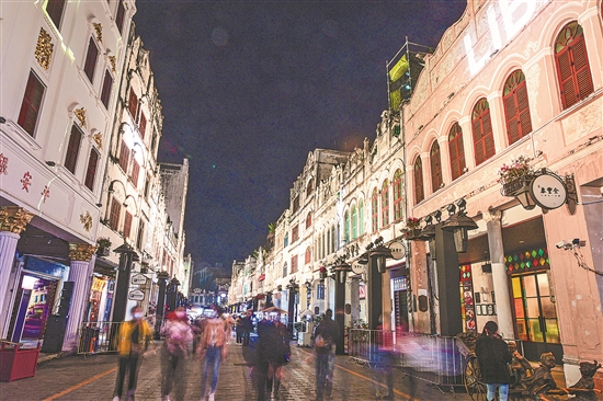 图为游客在海口骑楼老街游玩。新华社记者 蒲晓旭 摄