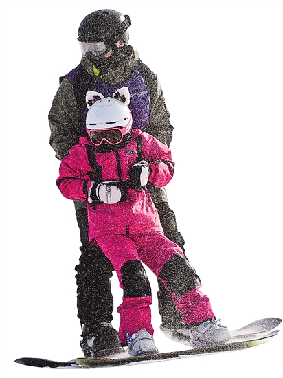 近日,在吉林省吉林市,一位小朋友(前)在教练的指导下练习单板滑雪。新华社记者 许畅 摄