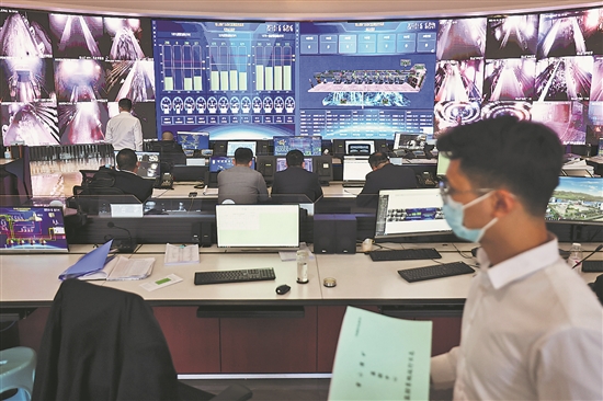 1月16日,在塔山煤矿智能化调度指挥中心,工作人员正在查看煤炭的生产情况。