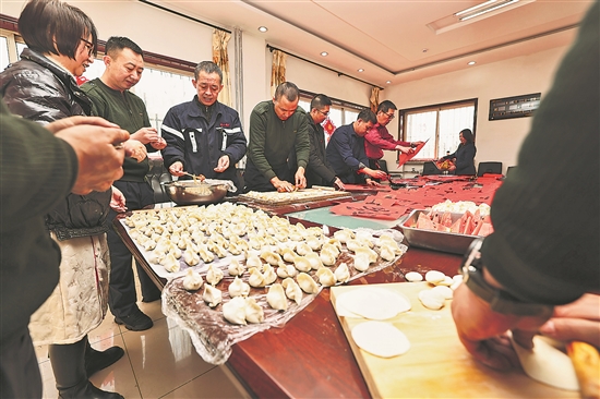 春节期间,塔山煤矿的不少职工将要在岗位上度过。1月16日,为了弥补职工过节的遗憾,矿上利用生产的间隙,把职工和家属组织在一起包饺子,提前过春节。