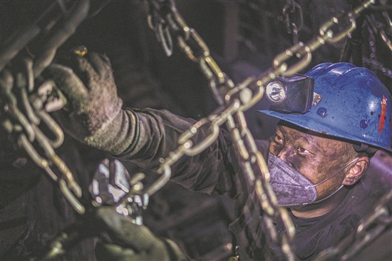 “机器的检修保养是安全生产的第一道防线。”1月11日晚上,《工人日报》记者在地下400米的矿井内见到了24岁的检修工赵强,他和工友正在更换一套智能化割煤机机组的截齿,一脸漆黑的他与年长他20多岁的老工人看不出有什么分别。