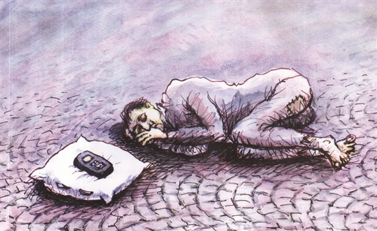 露宿街头的流浪汉唯一的“财产”就是这部手机,他与其形影不离,宁肯自己枕臂而眠,也不能委屈心爱之物。