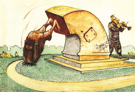 初学者来吹奏了,鼓噪的“乐声”令人难受,塑像也不堪忍受,跌下高台。如何解决双方矛盾?需要不懈努力和宽容理解。