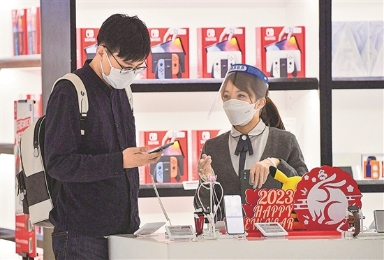 图为消费者在中免集团海口日月广场免税店选购产品。新华社记者 蒲晓旭 摄