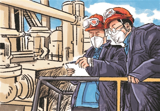 杜宇国看出了他的疑惑,解释说:“咱们车间的巡检工属于有毒有害岗位,氯、硫等的储罐都是压力容器,每个设备的压力控制参数不一样,巡检时一定要特别注意观察。”杜宇国叮嘱徒弟,记牢每个储罐的工艺指标,方便在巡检时进行对照。