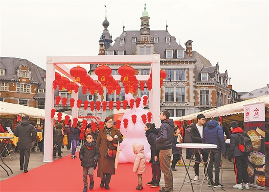 当地时间1月28日,人们在比利时纳慕尔参加“中国春节游园庙会”活动。新华社记者 潘革平 摄