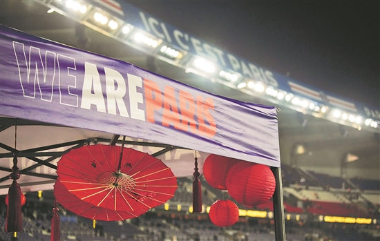 法国巴黎王子公园球场的“中国日”活动现场。 新华社发(戈兰·热尔沃摄)