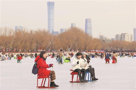 2月2日,北京什刹海冰场游客如织。北京冬奥会成功举办已近一周年,人们热情依旧。在这块北京有名的天然冰场,冰车、小海豚、冰上自行车等各类娱乐设施应有尽有。不仅有很多本地市民,更有大量外地游客慕名而来,一起享受冰上运动带来的美好时光。本报记者 吴凡 摄