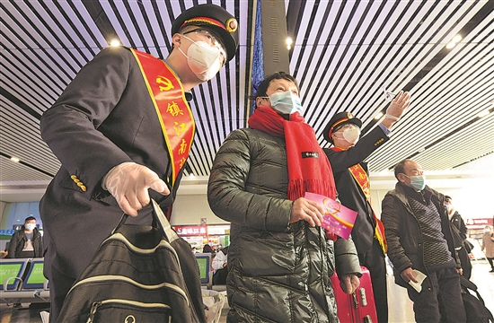 春运期间,为应对返程客流高峰,京沪高铁镇江南站加强与地区管委会、汽车站、公交等部门沟通联系,做好返程旅客到达疏散工作。该站还推出“爱心服务卡”服务,由“润之舟”雷锋服务站提供联乘服务,使老弱病残孕等群体享受从汽车门到列车门的“门到门”便利出行。