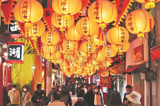 日前,在日本长崎市中心举行的长崎元宵节上,约1.5万盏中国灯笼为长崎的冬天增添了色彩。视觉中国 供图