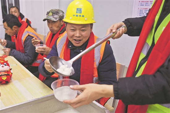 元宵佳节将至,中建三局总承包公司北京分公司崔各庄项目开展“心系工友情满工地”活动,为夜归的工友煮了热气腾腾的汤圆,慰劳元宵节前后坚守工地的辛苦。