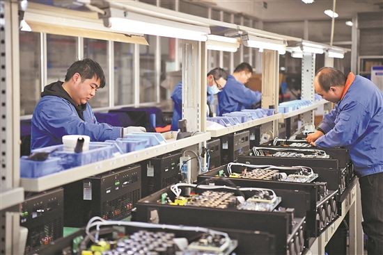 图为2月3日工人在西安西驰电气股份有限公司生产基地装配有源电力滤波器。