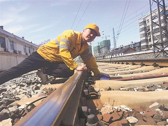 手握道尺,十几步一弯腰,几十步一伏地,在胶济线上行308米处的铁道线上,他慢走细看,并不时记录着线路设备检查的数据。11年来,中国铁路济南局集团公司淄博工务段周村线路工区工长李洋一直保持着这样的工作状态。春运以来,他做得更加仔细。