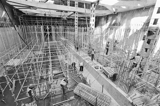 中铁七局建设者在福州地铁滨海快线闽都站内施工。目前福州地铁滨海快线全线车站已动工,10个车站主体结构已封顶,19台盾构机正在掘进。