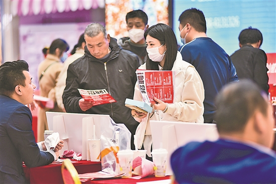 2月5日,求职者在山东省青州市举办的新春人才招聘会上咨询就业信息。