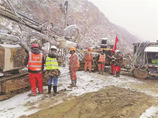 元宵佳节期间,在位于藏东高原海拔5000米的玉龙铜矿,中铁十九局矿业公司的职工们顶风冒雪奋战在运输矿石一线。