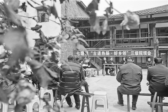2月3日,在重庆市璧山区七塘镇将军村“三级院坝会”上,村民、商户、干部在一起交流讨论。近年来,重庆市璧山区在基层治理实践中,全面推行区镇村“三级院坝会”,以“小院坝”撬动基层治理“大局面”,促进村民、干部、商户等亲切往来,推进基层协同治理,进一步助力乡村振兴。