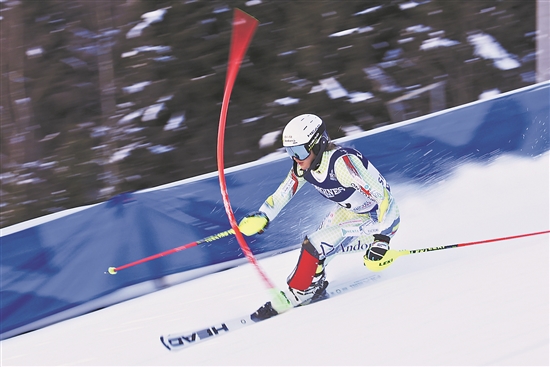 当地时间2月6日,在法国举行的2023世界高山滑雪锦标赛上,安道尔队的坎德·莫雷诺在女子高山组合赛比赛中冲刺。视觉中国 供图