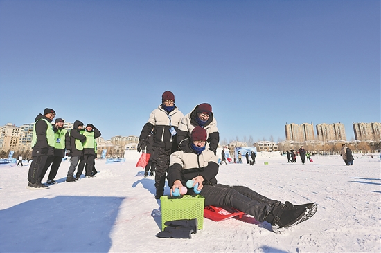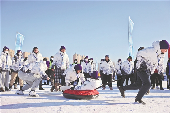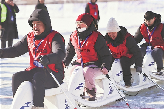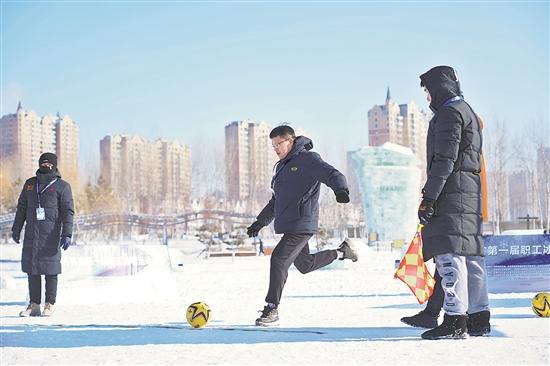 速度滑冰、雪地足球、雪圈竞速、冰上龙舟、雪橇接力……本届职工冰雪运动会包括竞赛类、趣味类共10项赛事,精彩纷呈,妙趣横生,职工们踊跃参与,全力比拼,热情分外高涨。“冰雪体育运动能有效激发参与者奋勇争先、拼搏进取的精神。”来自长春公共交通发展集团的郭福生,刚参加完一个项目的竞争,额头上满是汗珠,身为全国五一劳动奖章获得者、吉林省特等劳动模范,他由衷地表示,以本届运动会为契机,他将和工友们把体育精神融入本职岗位,踔厉奋发、笃行不怠,大力弘扬劳模精神、劳动精神、工匠精神,以“奋斗有我”的昂扬姿态,不断为全面建设社会主义现代化新吉林贡献智慧和力量。