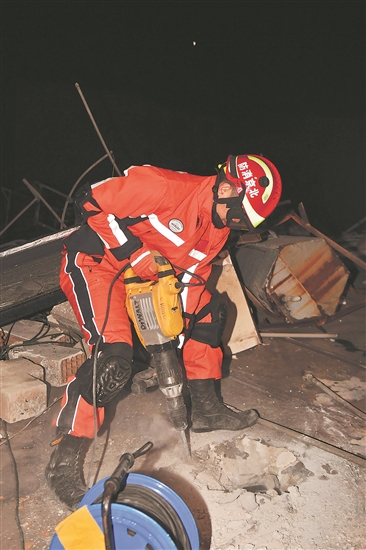 当地时间2月8日,中国救援队队员在土耳其哈塔伊的一处地震废墟搜救。中国救援队一行82人于当地时间8日下午1时30分,抵达地震重灾区哈塔伊省的哈塔伊市。